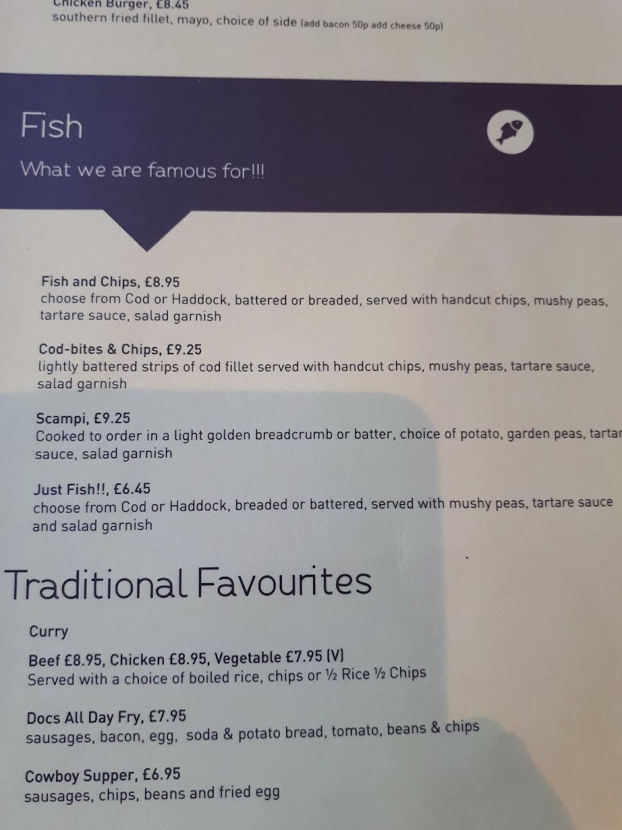 Welcome to Doc's Fish & Chips in Ardglass, a gem nestled in the charming coastal town of Ardglass, Northern Ireland. Renowned for its commitment to quality, the menu celebrates the timeless classic of fish and chips, offering dishes like Cod Bites, Scampi, and the quintessential Fish and Chips. Dive into the heart of traditional favorites with options like the Docs All Day Fry or the hearty Cowboy Supper.